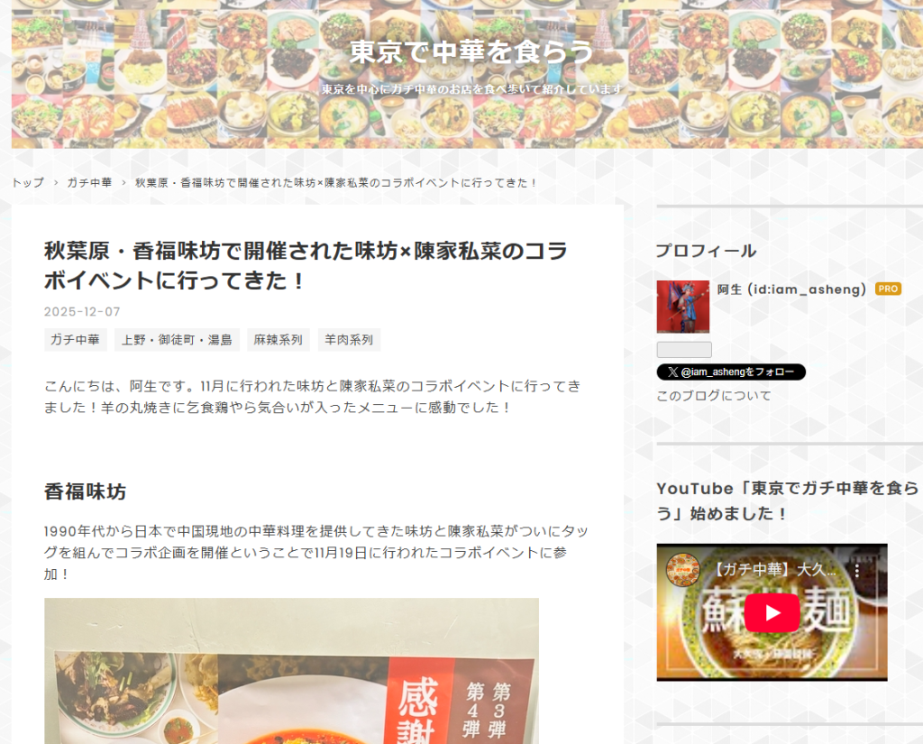 阿生様に「味坊×陳家私菜 コラボイベント」をご紹介いただきました