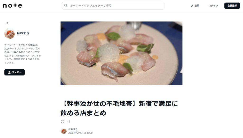 note記事「【幹事泣かせの不毛地帯】新宿で満足に飲める店まとめ」にて、新宿店をご紹介いただきました