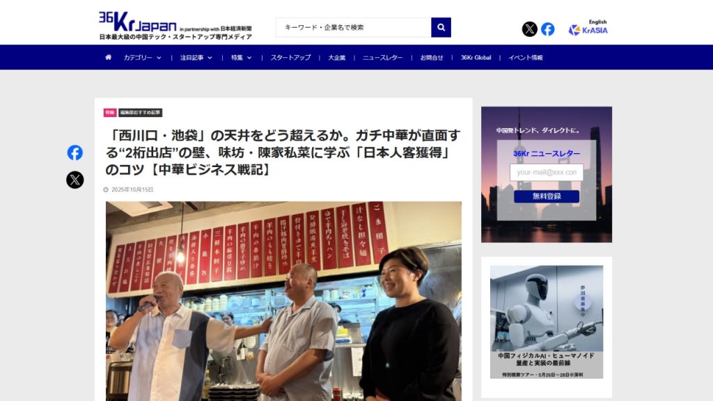 いつも陳家私菜をご愛顧賜り、誠にありがとうございます。 このたび、中国テック・スタートアップ・ビジネス専門メディアである「36Kr Japan」様の特集記事におきまして、陳家私菜の取り組みをたっぷりと取り上げていただきました! 記事は「ガチ中華が直... -